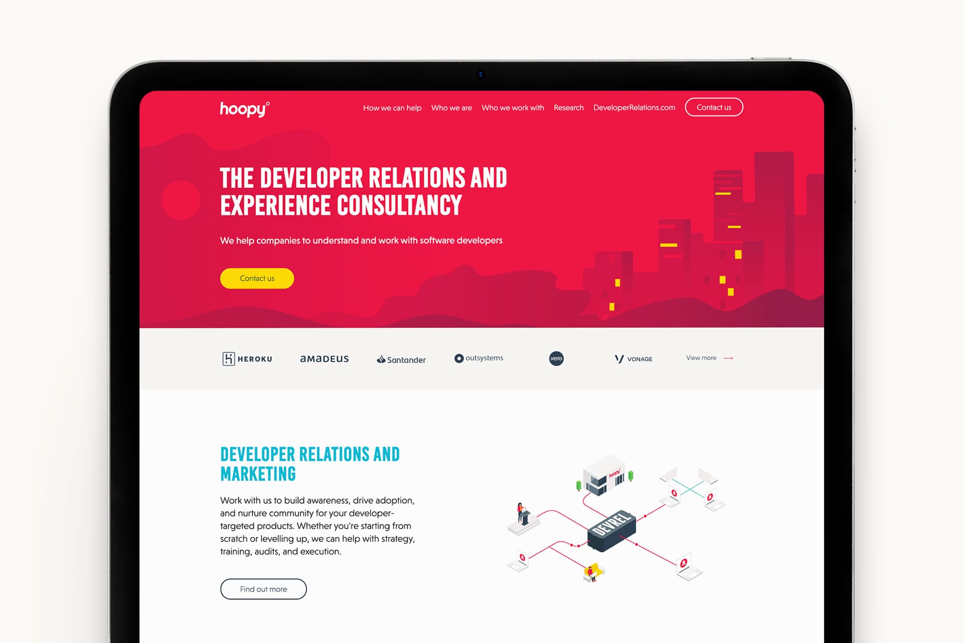 I created and managed Hoopy's brand identity and also designed and developed all assets for their DevRelCon events. Hoopy's client list includes leading finance institutions and global tech companies.